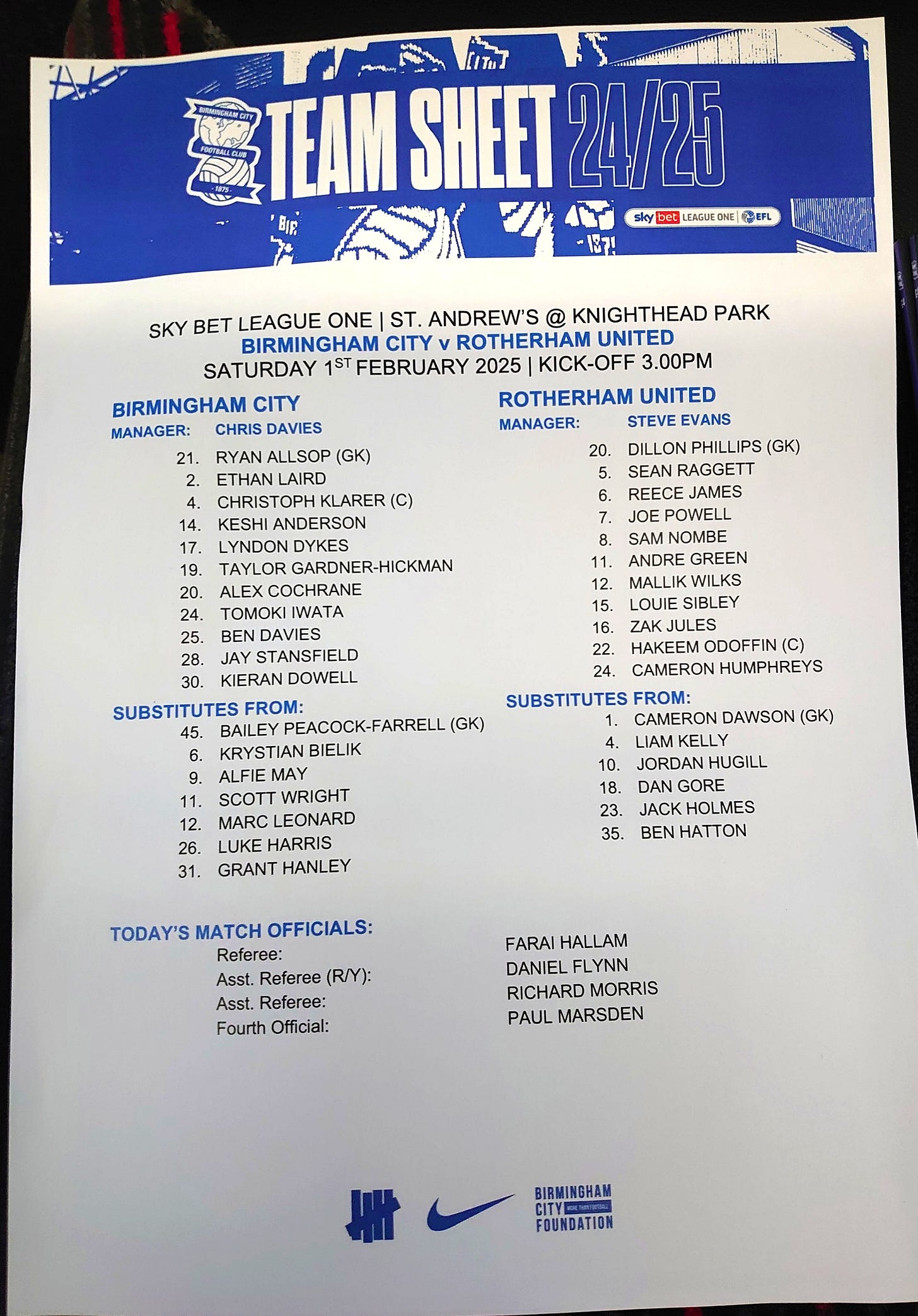 Obviously Phillips had assumed May was about to take the spot-kick, but to his astonishment ‘our Alfie’ merely handed the ball to Stansfield, who placed it and took responsibility, knocking it past the frustrated Millers keeper as calmly as you like. FT: Birmingham City 2 v Rotherham United 1. That's seventeen games in a row without defeat for Blues now. Attendance: 24,393 inc. 518 away fans. Not a bad turn-out for a third tier game, but it was actually Birmingham’s lowest league crowd of the season so far.