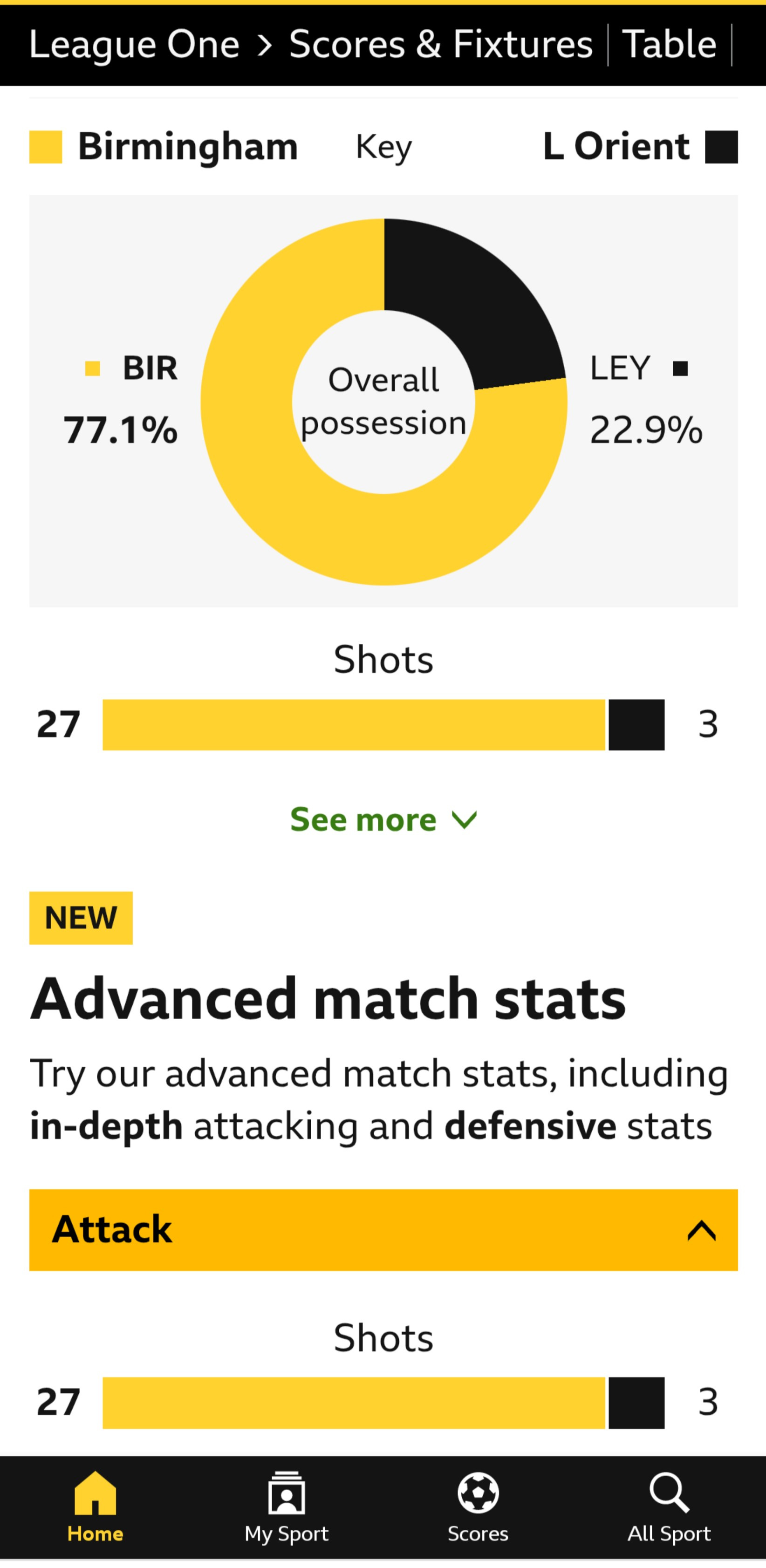 They say that every picture tells a story. It's fair to say that the following graphic, that I grabbed a screenshot of on the bus back to New Street Station, virtually renders inert any need for me to write about how dominant Blues were on the ball tonight.