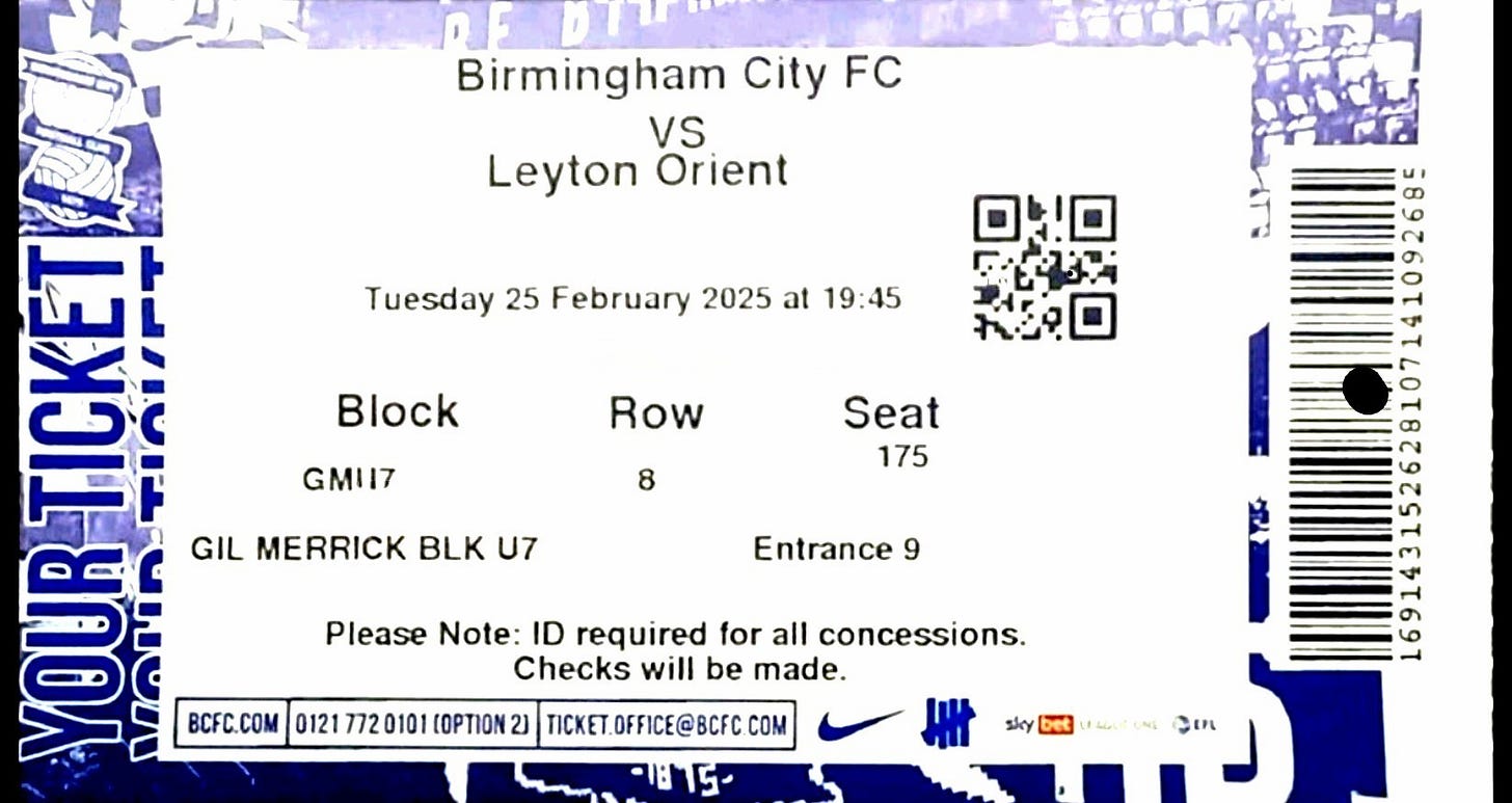 Tuesday 25th February 2025. EFL League 1. Birmingham City 2 (Taylor Gardner-Hickman 53, Ethan Laird 84) v Leyton Orient 0 Attendance: 26,857